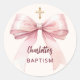 Pegatina Redonda Baptismo arco rosa chica cruz melocotón crema