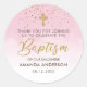 Pegatina Redonda Baptismo Chica Oro Y Acuarela Rosa Gracias
