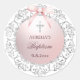 Pegatina Redonda Baptismo de armazón rosado con marco Purpurina pla