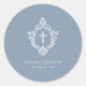 Pegatina Redonda Baptismo Dusty Blue Elegant Boy Cruz Blanca Escudo
