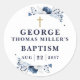 Pegatina Redonda Baptismo moderno botánico azul de la marina