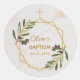 Pegatina Redonda Baptismo Rama de Olive de Mármol Geométrica Botáni
