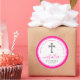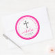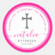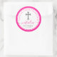 Pegatina Redonda Baptismo rosa Christening Naming Cross