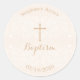 Pegatina Redonda Baptismo Rubor Lazo floral rosado Delicado