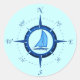 Pegatina Redonda Barco De Navegación Y Rosa De Brújula