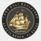 Pegatina Redonda Barco Dorado Navegando en Dirección de Retorno en