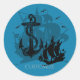 Pegatina Redonda Barco pirata y silueta negra de anclaje 2