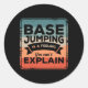 Salto Base es un sentimiento que no se puede explicar en el diseño retrata un saltador de paracaídas que se dispara por el cielo, capturando la emocionante experiencia del salto base. El diseño evoca un sentido de libertad y adrenalina, invitando a los espectadores a abrazar la emoción indescriptible de este deporte extremo.