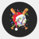 Pegatina Redonda Baseball Christmas Lights Santa Hat Baseball Playe
