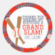 Celebrate your little sluggers special day with this baseball party favor sticker! Add this to your party favors as a thank you or create customized stickers for your guests. Features a vintage baseball theme in red and blue color scheme. Coordinating invitation and party decor also available.
