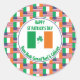 Pegatinas caseros IRLANDESES AMERICANOS CORNED BEEF & CABBAGE para el Día de San Patricio, con la bandera de IRLANDA y el shamrock en el centro y un patrón de baldosas de las banderas IRLANDESA y AMERICANA en el fondo. Hay un texto de personalizable alrededor del centro que dice FELIZ DÍA DE SAN PATRICK y CASA HECHA DE CAMA CORNED BEEF & CABAGE, que puedes personalizar con tu propio mensaje o usar para diferentes artículos. Ideal para alimentos o regalos IRLANDESES, especialmente para comida tradicional irlandesa-americana favorita en el día de SAN PATRICK, etc. Elementos coincidentes disponibles en la colección IRISH AMERICAN.