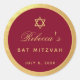 Pegatina Redonda Bat Mitzvah Burgundy Faux Gold Elegant Calligraphy