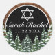 Pegatina Redonda Bat Mitzvah de Black Snowy Wood & Forest Pine Bar