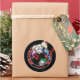 Este emblema circular estilo traje de tarjeta muestra a Harley Quinn guiñando el ojo sobre su hombro mientras sostiene una gran maleta.