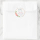 Pegatina Redonda Bautismo elegante y flores rosadas de primer cumpl