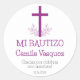 Pegatina Redonda Bautismo en español simple cruz Bautizo y hojas