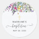 Pegatina Redonda Bautismo en la pradera de flores silvestres