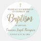 Baptismo infantil Verde azulado personalizado Gracias Pegatina redondo clásico: Elegancia moderna El bautismo infantil Verde azulado personalizado Gracias Pegatina redondo clásico combina la elegancia moderna con un toque tradicional para crear un hermoso pegatina perfecto para el bautismo de su hijo. Diseñado con cuidado y atención a los detalles, este pegatina es una manera elegante de expresar gratitud a sus huéspedes. Diseño contemporáneo: El pegatina presenta un diseño contemporáneo que combina estética moderna con elementos clásicos. La impactante forma diagonal verde azulada sirve como telón de fondo, añadiendo un sentido de profundidad y dimensión al aspecto del pegatina. Cruz de oro impresa: En el centro del pegatina, se encuentra una prominente cruz de oro impreso, que simboliza el significado del bautismo. La cruz dorada añade un toque de sofisticación y reverencia al diseño. Personalización sencilla: este pegatina está diseñado para ser fácil de personalizar. Puede personalizar con el nombre de su hijo o cualquier otro texto que desee. Ya sea que quiera usar estos pegatinas para regalos, regalos o como un toque especial para los invitados del bautismo de su hijo, puede agregar fácilmente su toque único. Uso versátil: Estos pegatinas son versátiles y se pueden utilizar de diversas maneras. Hacen adiciones maravillosas a favores de fiesta, tarjetas de agradecimiento, sobres y otros artículos asociados con la celebración del bautismo de su hijo. Apreciar el momento: Los bautismos son hitos significativos, y expresar gratitud a sus invitados con estos pegatinas personalizados te permite apreciar el momento y crear recuerdos duraderos. Elija el bautismo infantil Verde azulado personalizado Gracias Pegatina circular clásico por una manera contemporánea y elegante de conmemorar el bautismo de su hijo. Su diseño reflexivo y su fácil personalización lo convierten en una encantadora adición a su celebración.