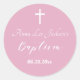 Pegatina Redonda Bautismo moderno cristiano cruz blanca rosada turb