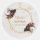 Pegatina Redonda Bautismo Peonías Borgoña Mármol Dorado Geométrico