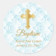 Pegatina Redonda Bautismo personalizado en azul, Damasco blanco y o