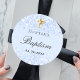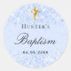 Pegatina Redonda Bautizo brillo azul claro destellos niño cruz
