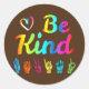 Pegatina Redonda Be Kind Love ASL Sign Language Nonverbal Teacher