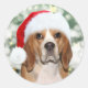 El perro Beagle usa un sombrero de Papá Noel pero no lo pone en el espíritu de los Navidades aún así amantes del perro Navidades pegatina de vacaciones