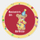 Pegatina Redonda Bear de cumpleaños lindo edad 5