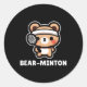 Pegatina Redonda Bear minton Cute Kawaii Personalizado Bear Cub Bad