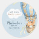 Esto hará una agradable adición a las invitaciones a la ducha de bebé o a los favores de tu fiesta. El oso lindo en un globo de aire caliente está en tonos azules tan adecuados para una ducha de bebé para un niño. ¡Podemos esperar! está escrito en la nube. Se personalizará agregando un nombre de la madre a ser.