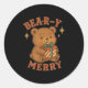 Pegatina Redonda Beary Merry Cute Retro Christmas Bear Gift Box Vin