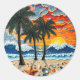 Pegatina Redonda Beautiful Beach Scene with Palm Trees
