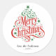 Pegatina Redonda Beautiful Calligraphy Merry Christmas Tree Custom