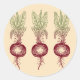 Un ilustracion vintage de una remolacha es de color rojo y verde.