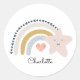 Moderna y adorable color boho arcoiris pastel acuarela pegatina de bebé personalizado con estrella pequeña y corazón rosa. Encuentre cualquier uso creativo para este nombre pegatina, desde ducha de bebé hasta artículos para niñas. Libros pegatinas, computadoras, cuadernos, sobres, regalos y más!