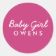 Pegatina Redonda Bebé Chica Apellido Baby Shower Pegatina-Rosa Blan
