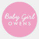 Pegatina Redonda Bebé Chica Apellido Baby Shower Pegatina-Rosa Blan