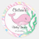 Pegatina Redonda Bebé Chica Rosa Polka con Baby Shower de ballena p