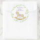 Pegatina con ducha de bebé decorado con hermosos ilustraciones acuáticos de un adorable caballo mecedor rodeado de delicadas ramas con hojas verde claro.