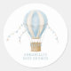 Pegatina Redonda Bebé ducha azul cielo caliente aventura en globo