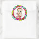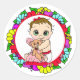 Pegatina Redonda Bebé dulce con flores de oso de peluche