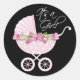 Adorable baby shower de bebé en carruaje rosa es una niña stickers de baby shower.