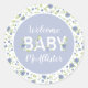 Pegatina Redonda Bebé en el niño de flores azules de invierno