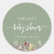 Pegatina Redonda Bebé en flor salvaje Sage Green Baby Shower