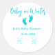 Pegatina Redonda Bebé en invierno ducha de bebé azul pies bebé neva