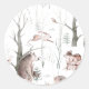 Pegatina Redonda Bebé en la ducha de bosque en acuarela
