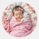Pegatina Redonda Bebé floral rosa y gatito blanco