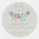 Estos pegatinas de Baby Shower de agradecimiento neutros en cuanto a género presentan unos bonitos ilustraciones hechos a mano de trajes de pijama, animales de felpa y biberones colgados en un tendedero. Nombre del personalizable, evento, fecha y un mensaje personal de agradecimiento. Elegante fondo verde salado suave.