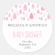 Pegatina Redonda Bebé gotas de lluvia rosas parejas de bebés ducha